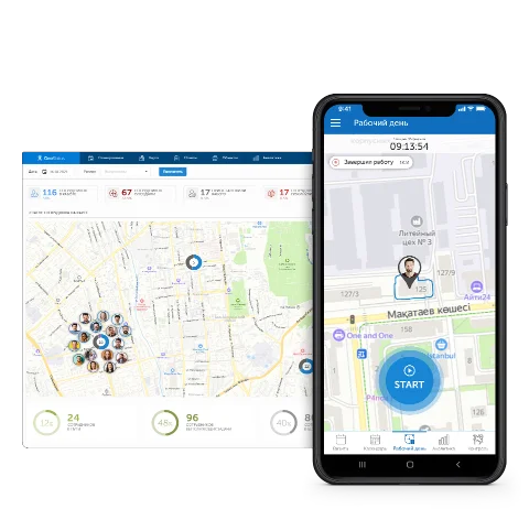 Комплексный учет рабочего времени не только локальных, но и для удаленных или географически распределенных офисов. В случае если сотрудник покидает рабочее место, доступен GPS мониторинг перемещений на карте.
